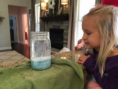 For more science, one day we made our own snow blizzard in a jar! A very fun, beautiful, and awesome, simple project. Here's what you need: