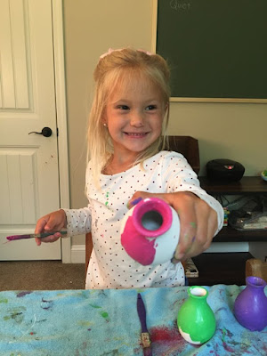 The dollar bin at Target had 3 clay flower pots for $3 total. I snatched those up and brought those home for Ellie to paint however she wanted. She said one was a Christmas vase. Then my husband picked me wildflowers and I got to put them in Ellie's vase!