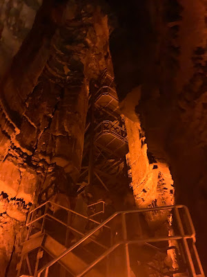 Inside the caves. Y'all!!! Oh my goodness. So first off, as we approached the cave...from the super humid muggy outside of the earth, we felt like a blast of ice cold air flow. Wow! But I was prepared with my coat. Bring layers. Wear jeans and closed toe shoes. Don't bring too much stuff, a small bag would be fine. I had my backpack purse. We entered inside and it was quite the sensation pulsating through my veins of excitement. There were times inside the cave that were narrow and times when the cave were wide open, high, and vast. Breathtaking. It also makes you hold your breath when you see some of these teeny tiny holes that people actually crawl through with no part of their body circumferentially untouched. I mean I'm not claustrophobic but....laying on my back or stomach in a dark cave hole with my arms above my head and not having a choice but to finish what I started freaks me out. And that's with gear and a head-lamp. Can you imagine the actual explorers back in the day when all they had was the light of a candle?! Mercy! I was good doing a long walking tour for sure. Eric wanted to go crawl through a hole though. Bless.