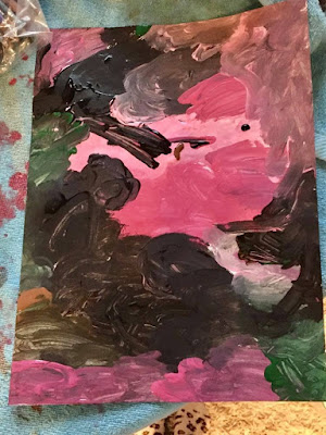 We also are continuing reading about, observing, and practicing the art of Vincent Van Gogh. I asked Ellie which of his paintings she would want to replicate. She liked the idea of painting her bedroom. This would be mimicking his "Bedroom at Arles." She chose pink in a couple shades as there is so much pink in her room. Her art is more a piece of abstract....haha, but she tells me she painted her pink chair, her pink bed covers, her dog, Blondie, who was painted pink and given one black eye and a long pink tail. She painted her bed with her in it and her daddy in her room camping in her corner. The creative process and story she came up with as she worked was the most important part and I was glad to hear her give it so much thought.